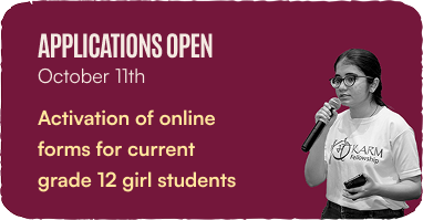 Above all, a KARM Fellow goes beyond the world of textbooks to develop practical and applied skills, build an informed world view, and foster an attitude that enables her to explore opportunities and engage with new experiences effectively.