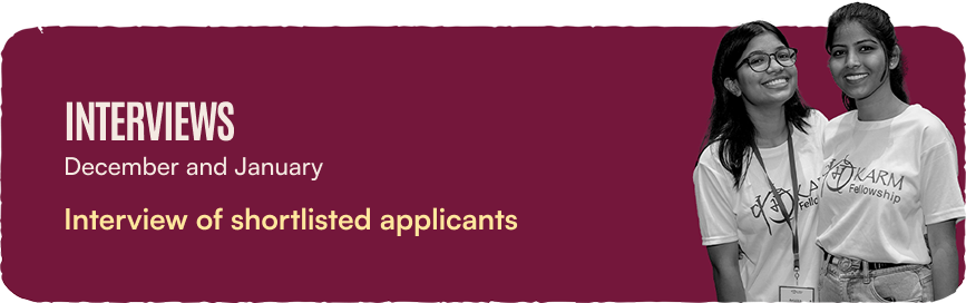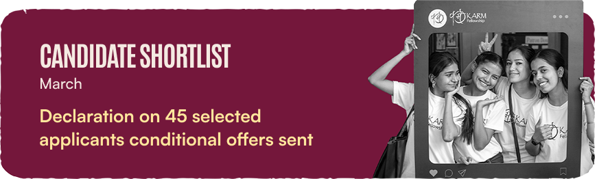 Due to the learning requirements of the Fellowship, KARM does not support applied courses (B.Pharma, B.Tech. etc.), diploma courses, evening college, or any form of distance/open learning, and self-financing courses.